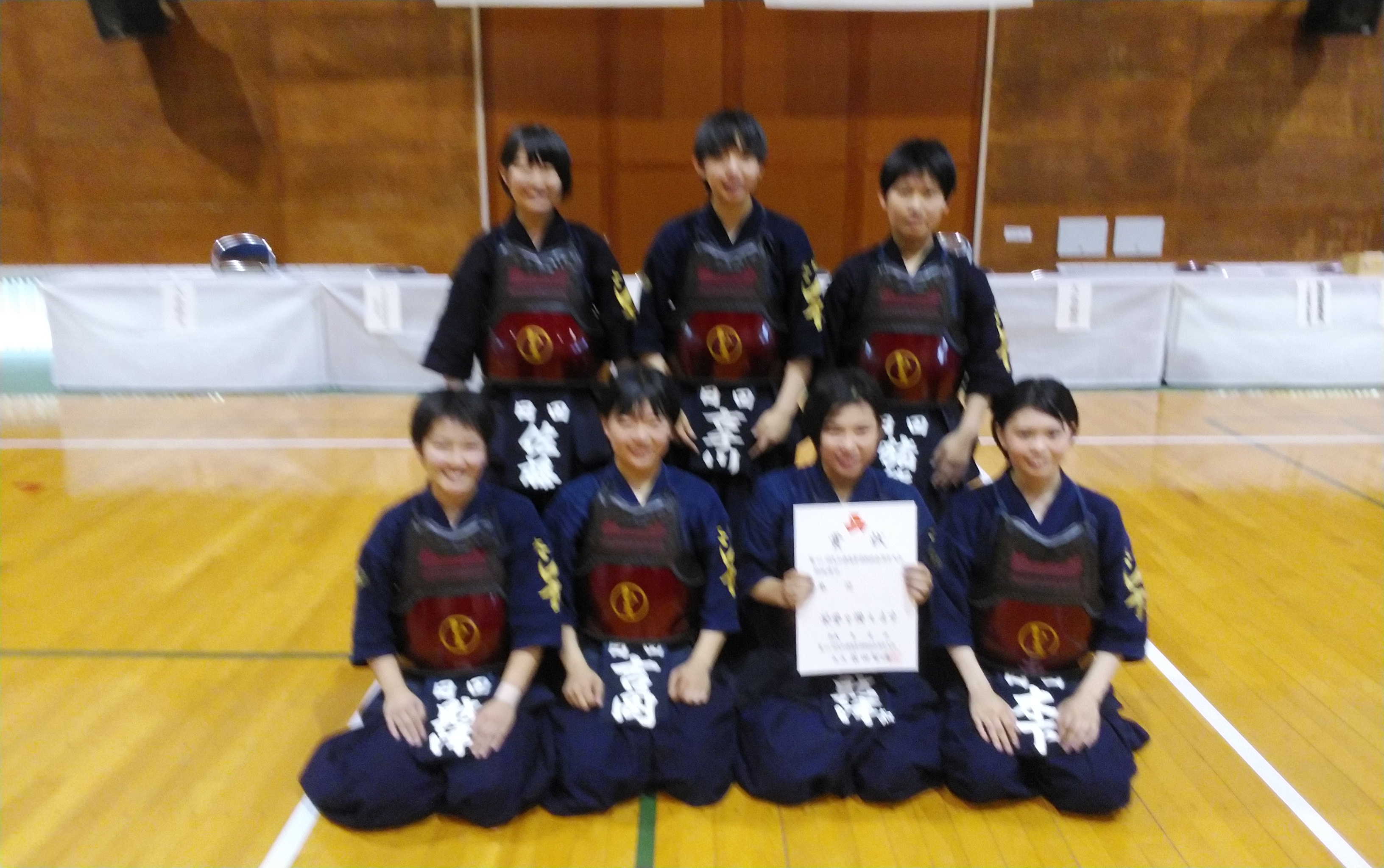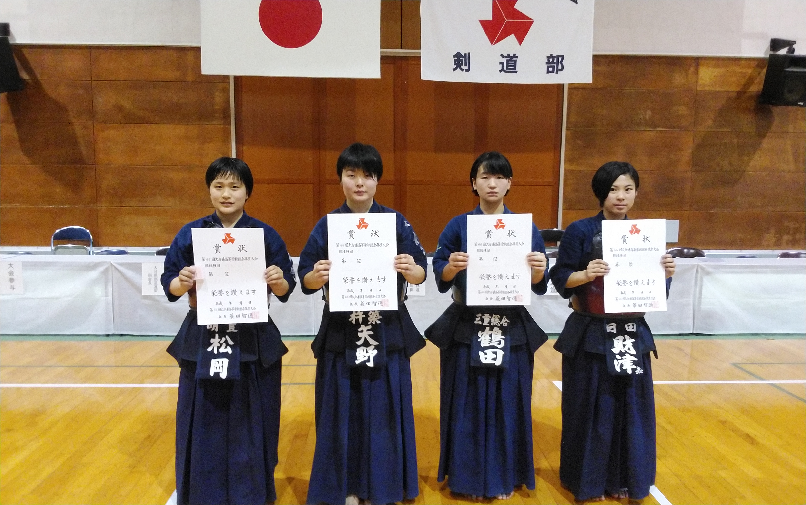 女子団体戦は、三重総合高等学校、杵築高等学校、日田高等学校の混戦が予想された。三重総合高等学校は、先鋒の佐藤と次鋒の泉が圧倒的な攻撃力を発揮して、常に先行する試合展開を作り、大将の鶴田が落ち着いてチームを勝利に導いた。決勝リーグ3連勝で2年連続6回目のインターハイ出場権を手に入れた。準優勝は日田高等学校、文武両道での努力が報われ、紙一重の差で九州大会出場権を手にした。