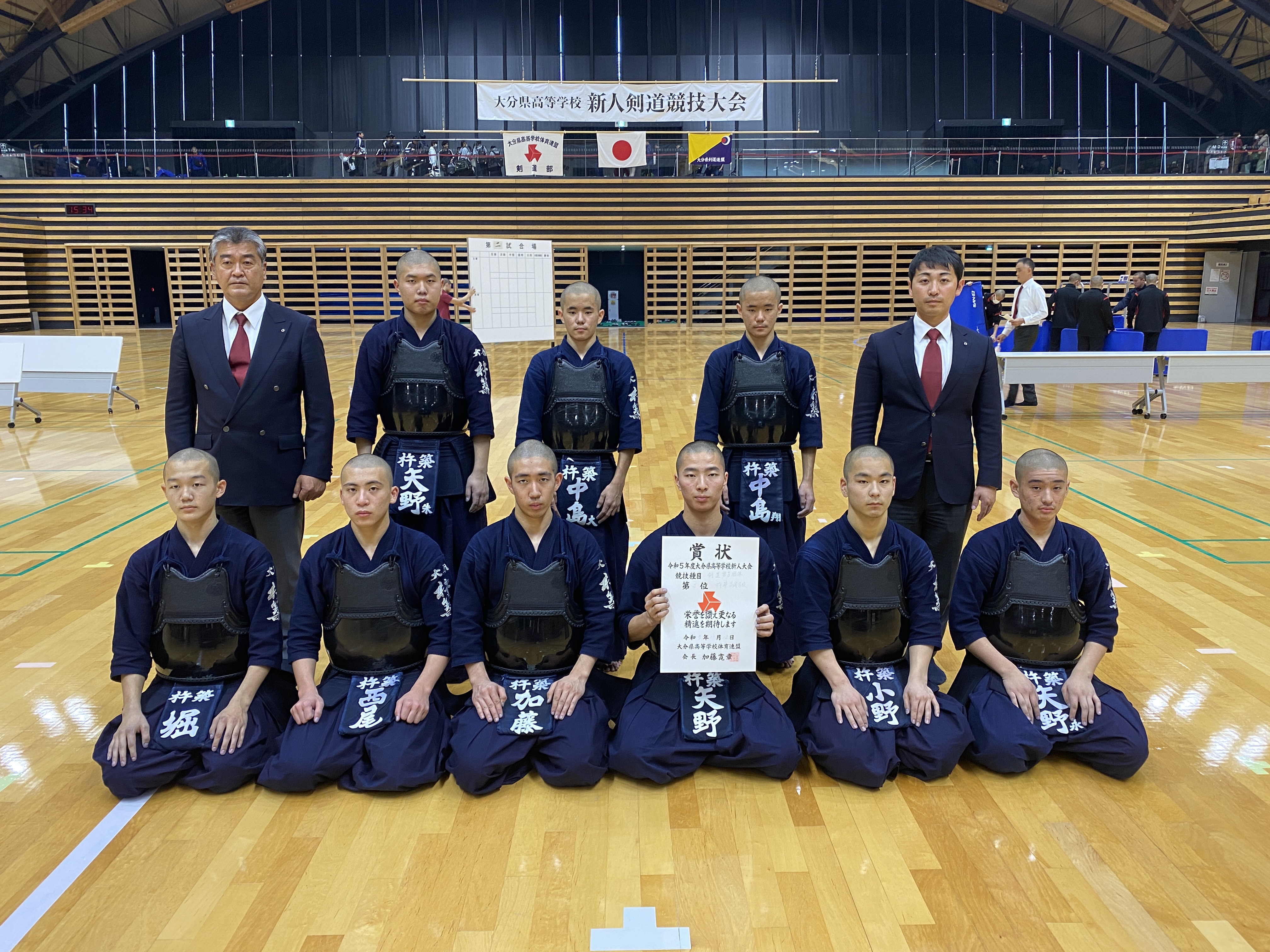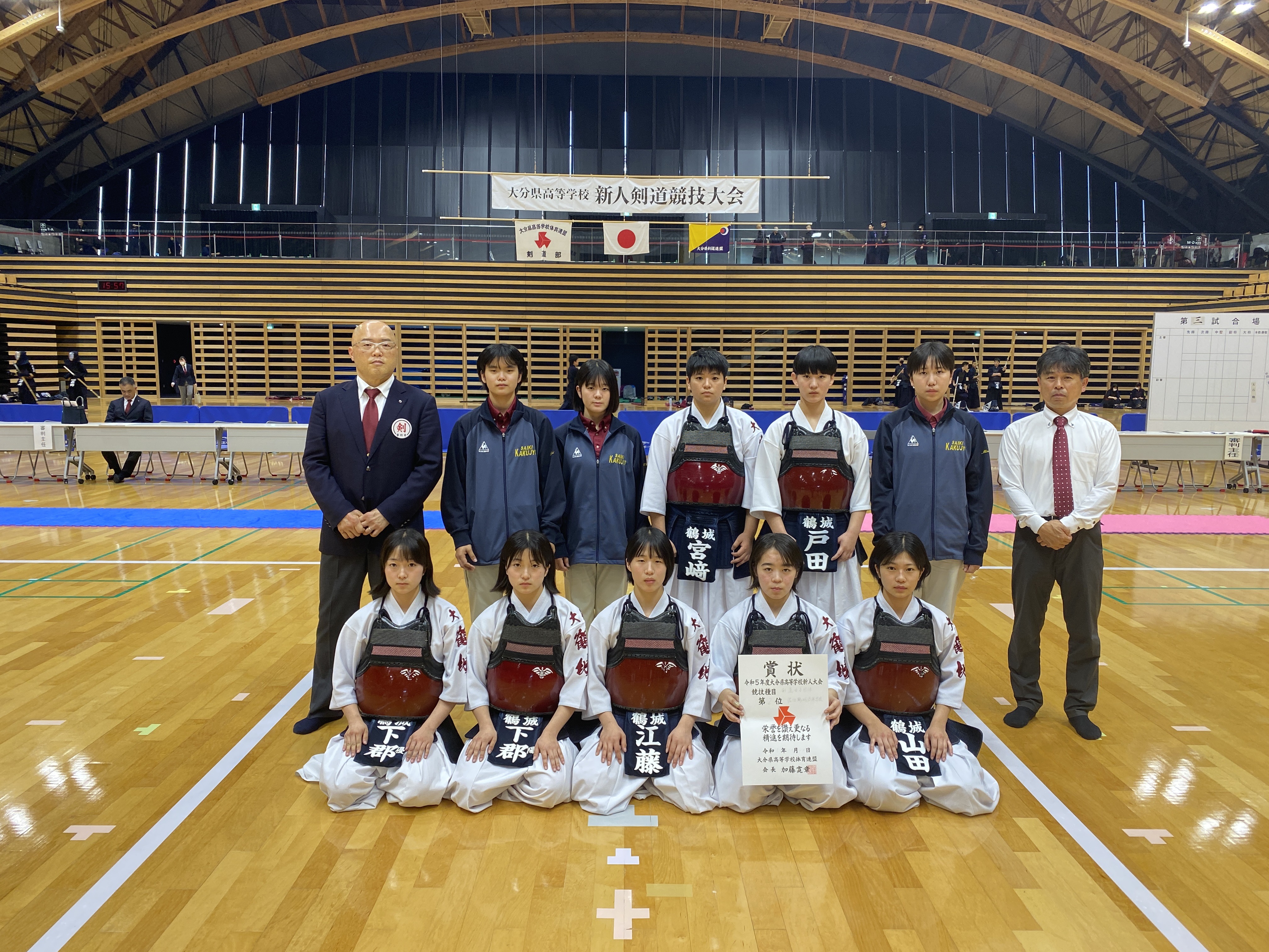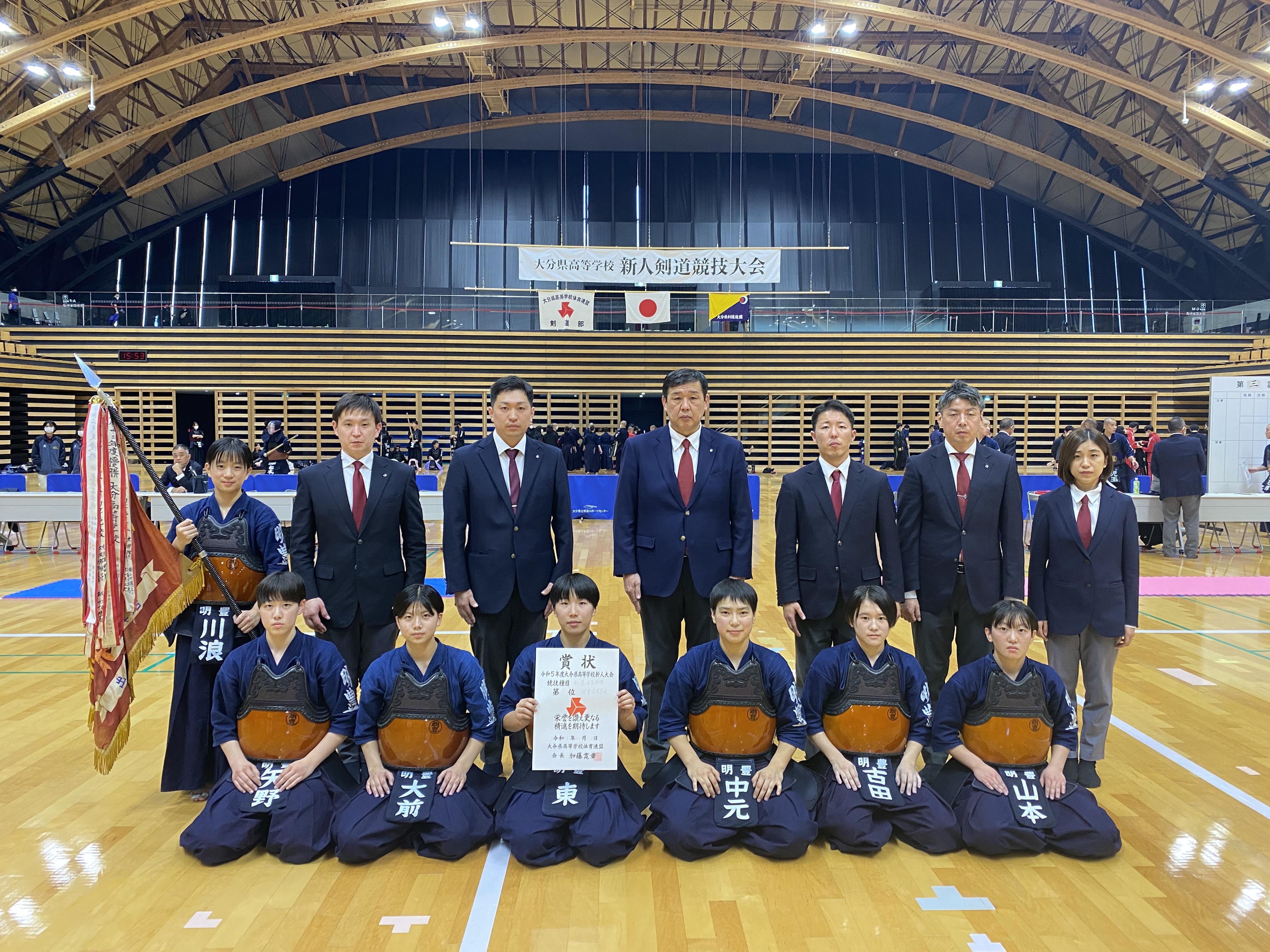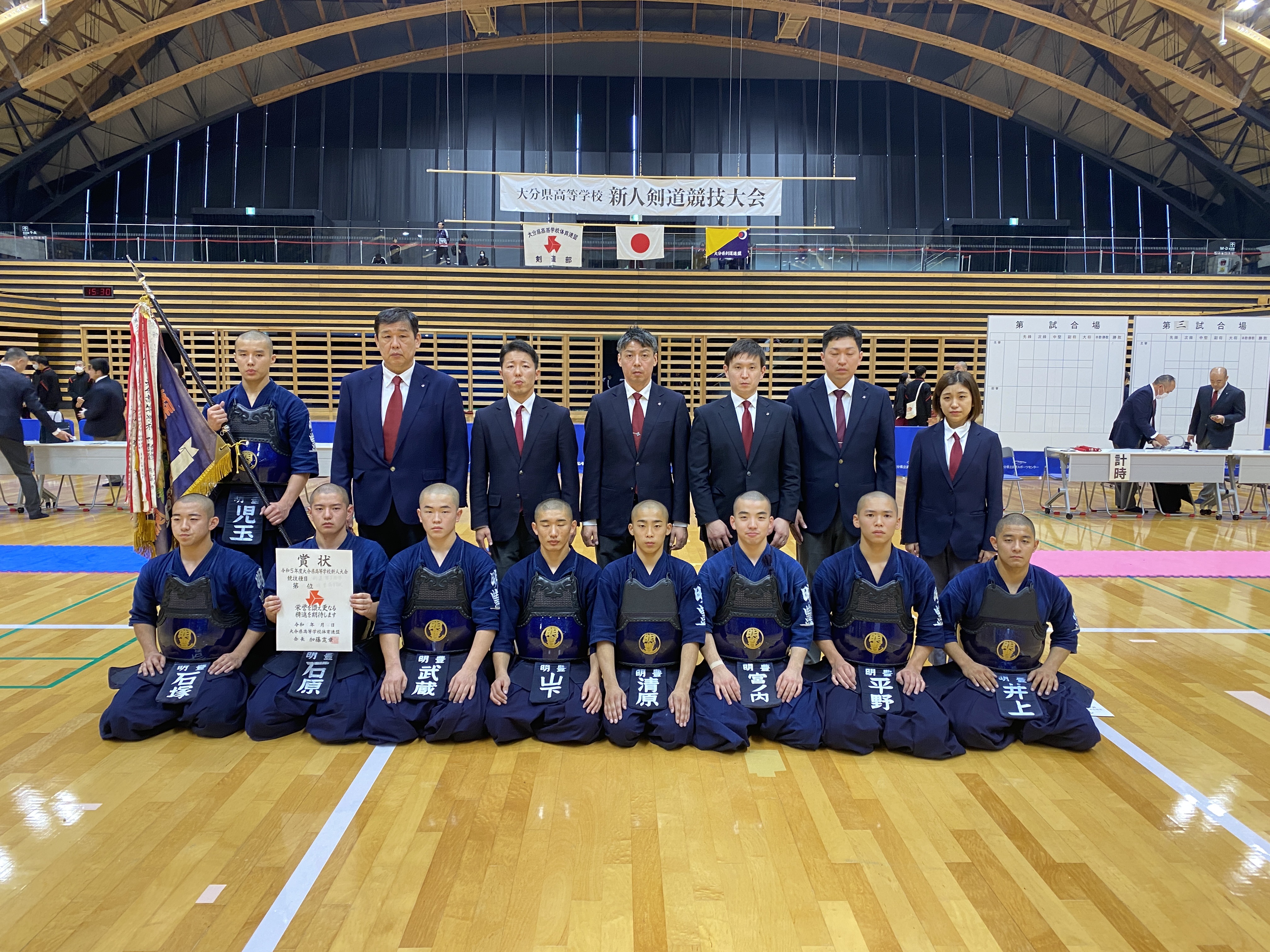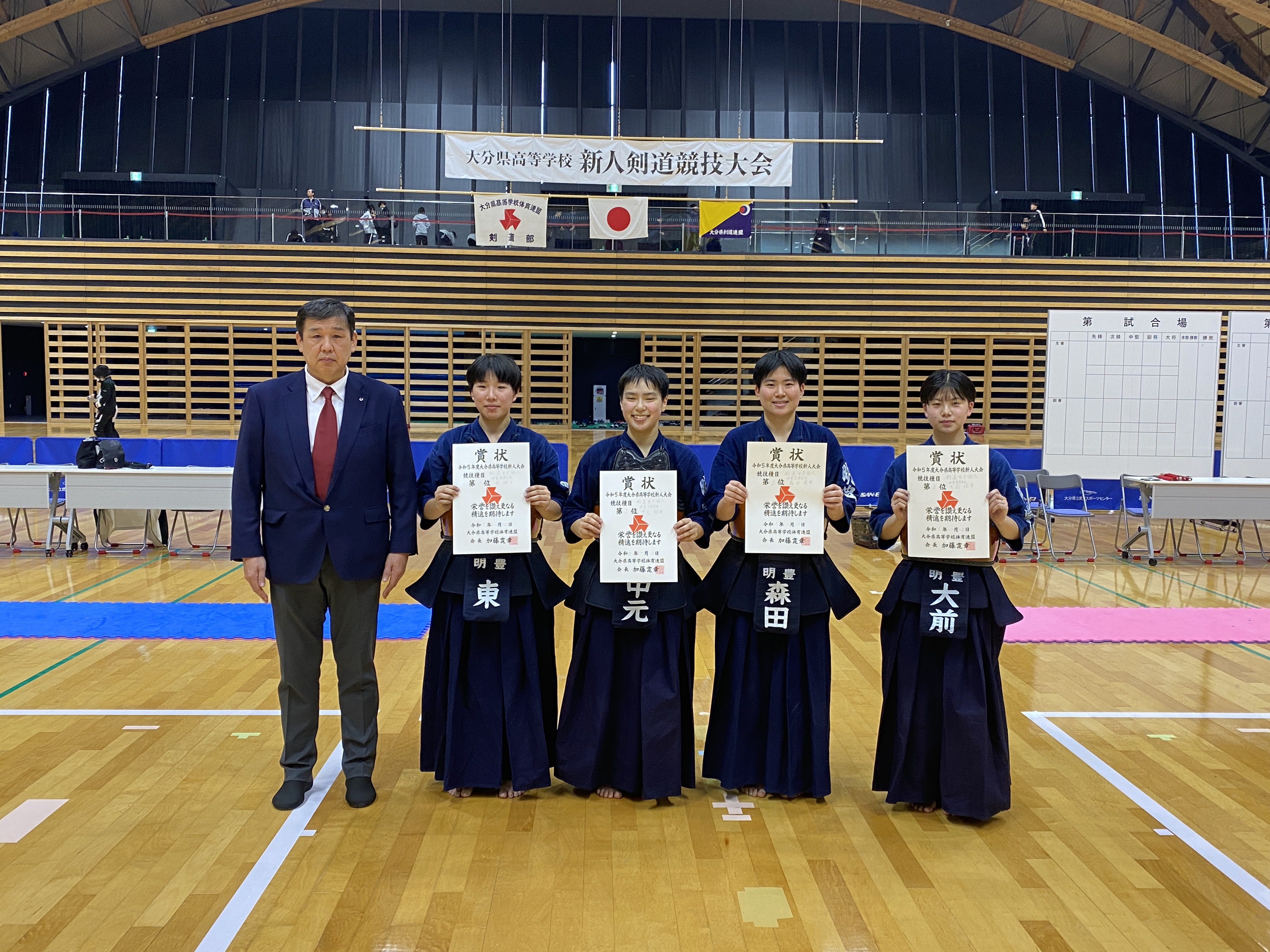 男子団体戦では、明豊高校と大分鶴崎高校の決勝戦の末、