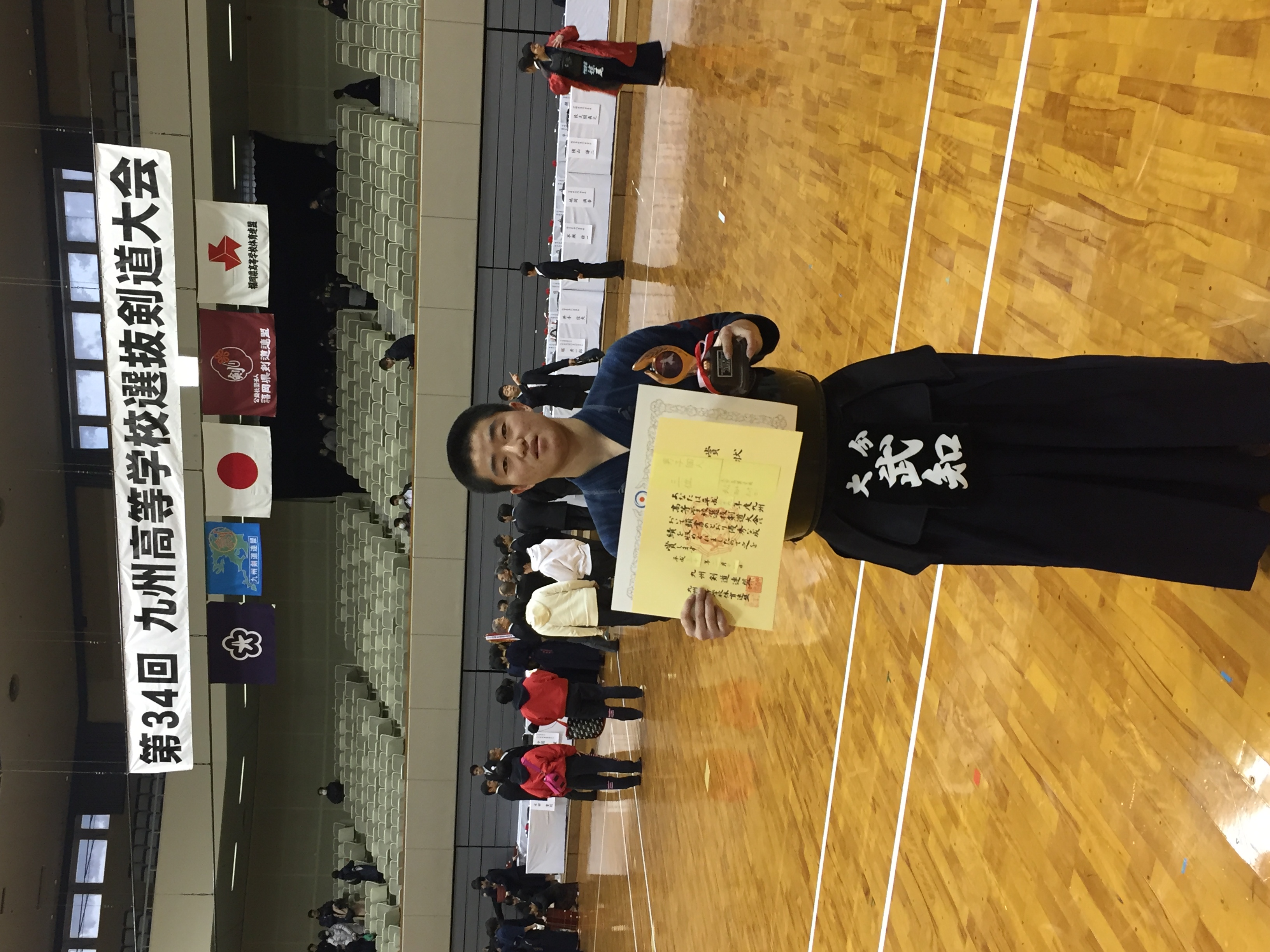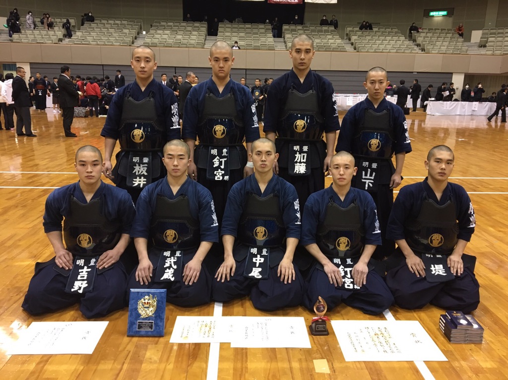 北九州市総合体育館にて行われました、九州高等学校選抜剣道大会において、男子団体で明豊高等学校が第3位(2大会連続)、男子個人戦にて中尾泰真選手(明豊)と武知礼士選手(大分)が3位入賞を果たしました。男子の健闘が光った大会でした。