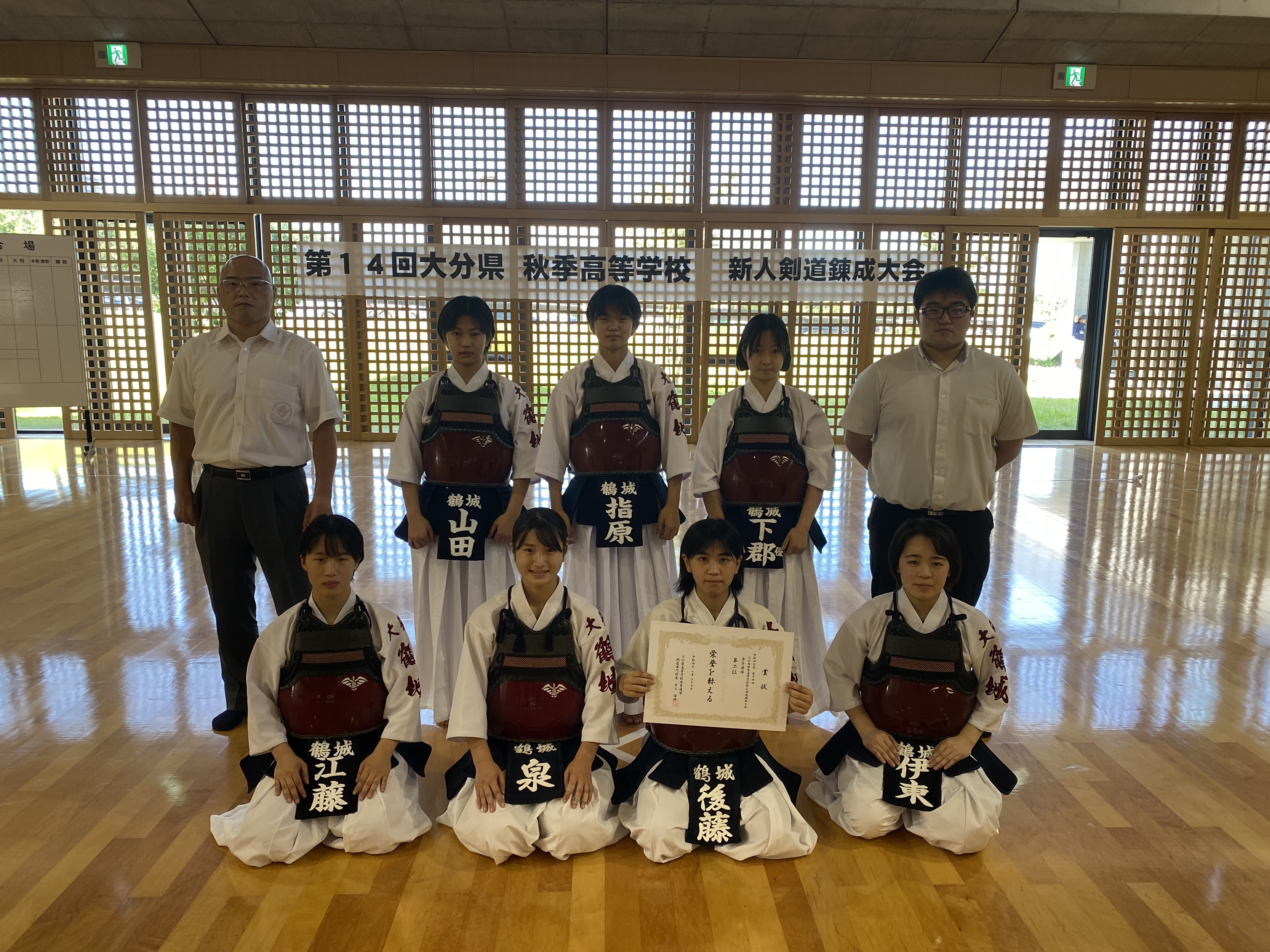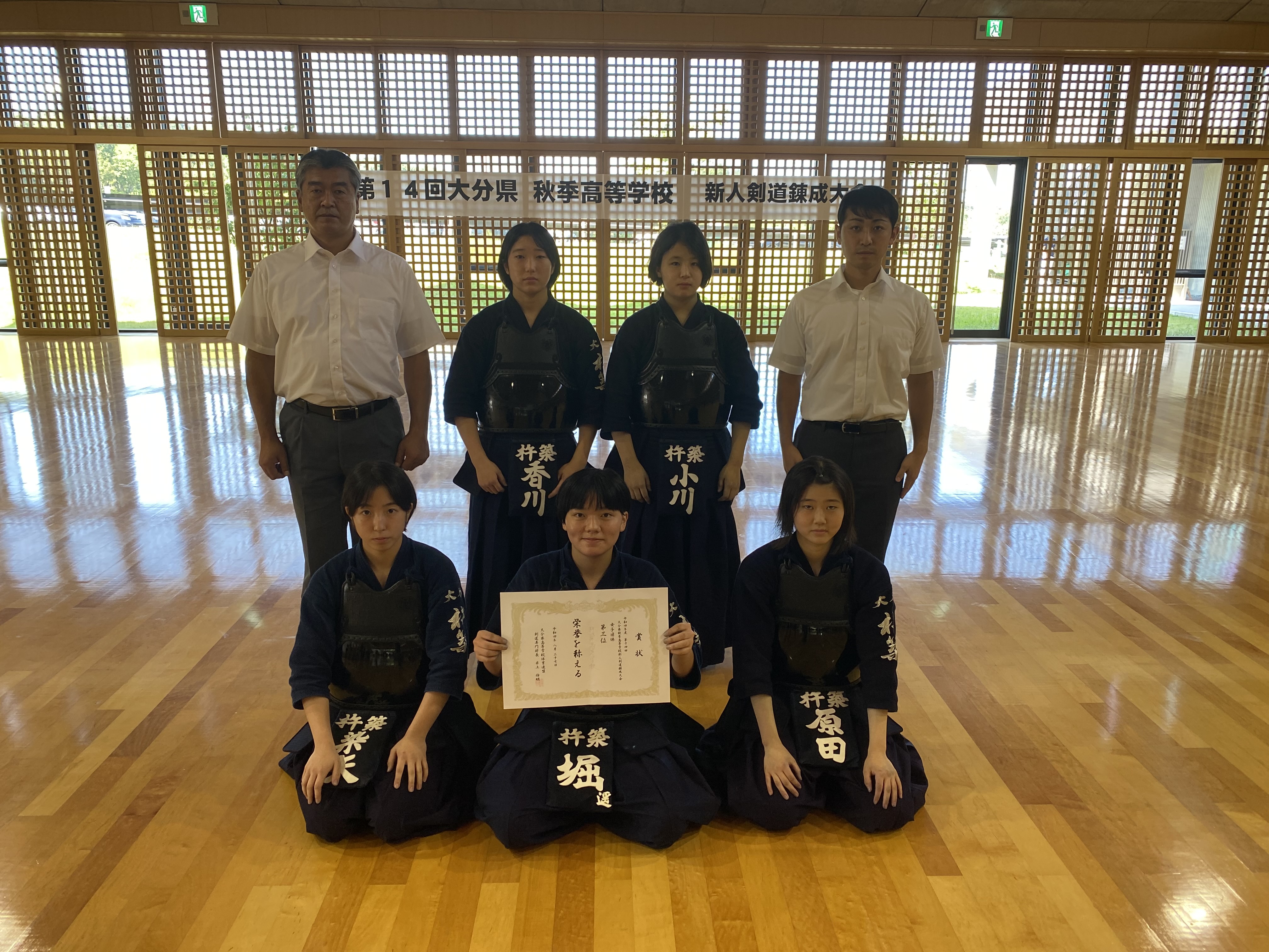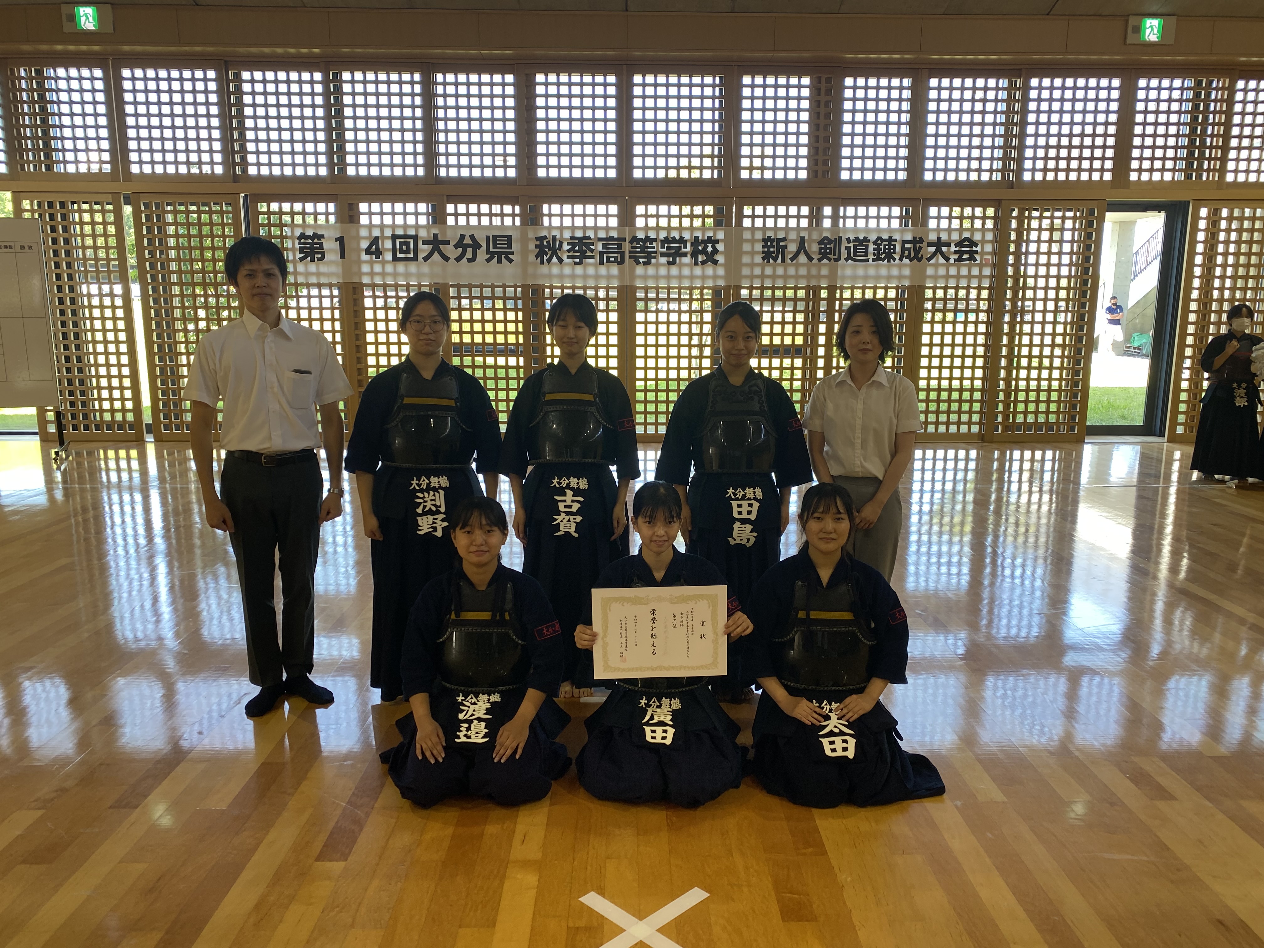 大分鶴崎高校の決勝戦の末、明豊高校が優勝しました。女子団体戦では明豊高校と佐伯鶴城高校の決勝戦の末、明豊高校が優勝しました。