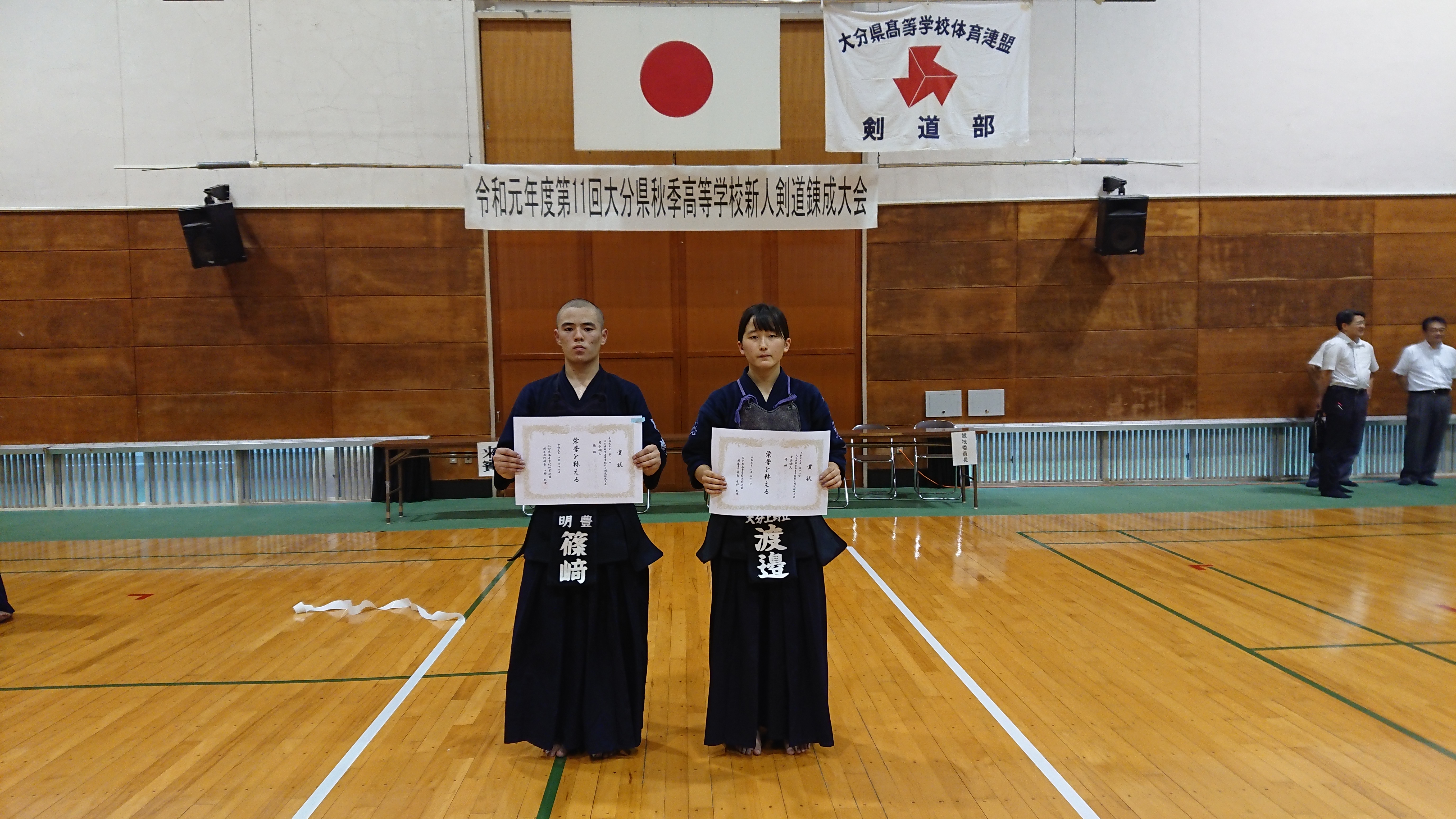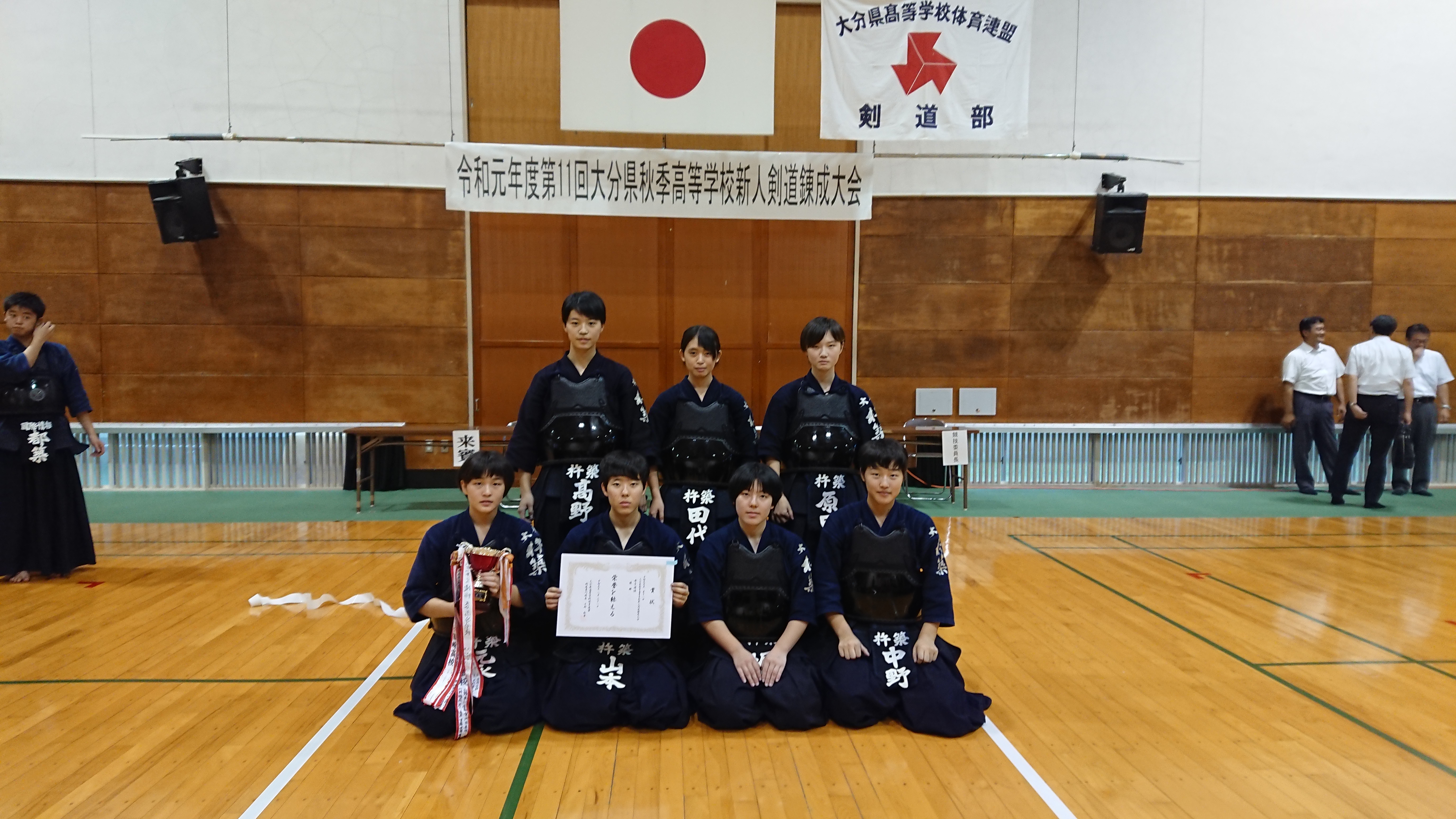大分県秋季高等学校新人剣道錬成大会の結果をお知らせします。各学校新チームとなり夏の鍛錬の成果が試される試合となりました。男子は高校総体に続いて明豊高校が団体戦を制しました。女子は昨年に続いて杵築高校が優勝を果たしました。この大会の結果、新人戦のシード権が確定しました。各学校冬の九州選抜出場権を目指した戦いが今から始まります。各学校新人戦でベストが尽くせるよう日々の稽古に取り組みましょう。最後に、特別枠の個人戦で優勝された篠崎選手(明豊)、渡邉選手(大分上野丘)、おめでとうございます。